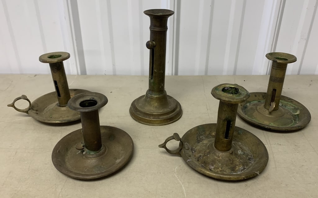(5) ANTIQUE BRASS CANDLESTICKS