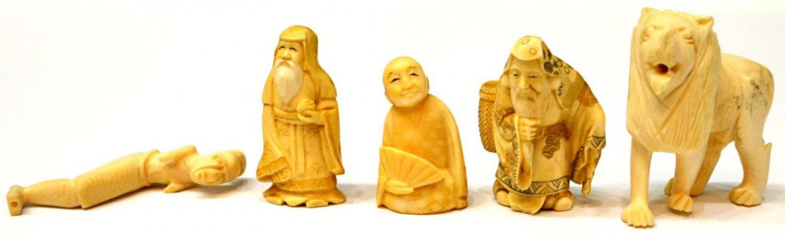 (5) CARVED IVORY NETSUKE & OKIMONO