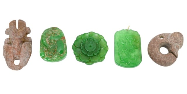 (6) Chinese Carved Jade and Hardstone Pendants.