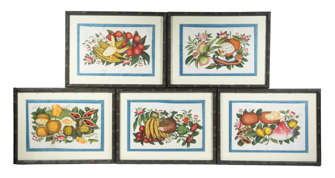 (5) CHINESE PITH PAINTINGS, FRAMED