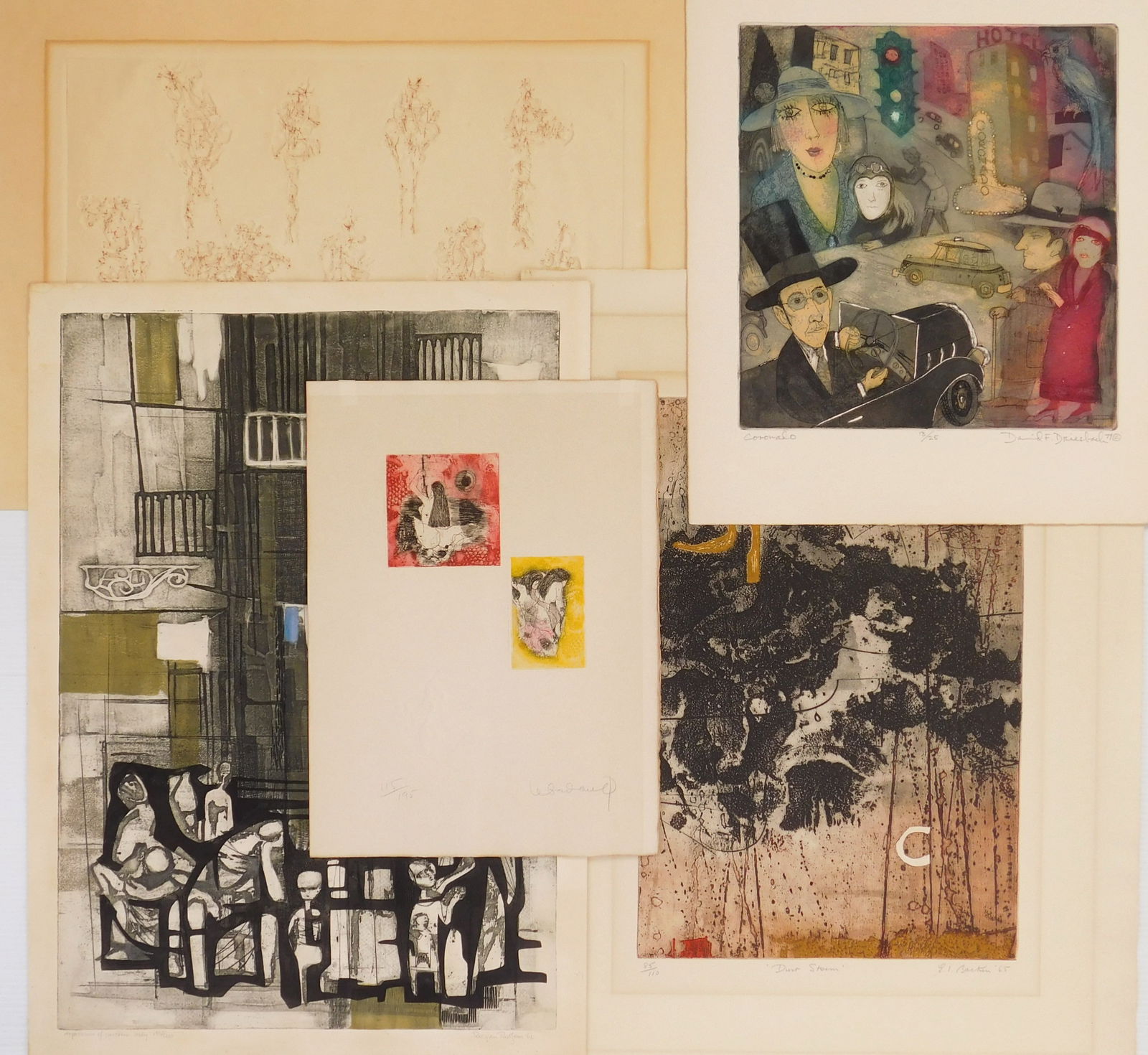Sold5 Contemporary prints5 Contemporary prints 1). Jose de Creeft- ''Les Muses''- lithograph in colors, 1970, signed and numbered 24/100 in pencil. 2). Fernando de Szylo- ''Syy5''- etching in colors with embossing, 1978, signSee Sold Price