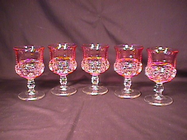5 CRANBERRY FLASH GLASS STEMMED GOBLETS