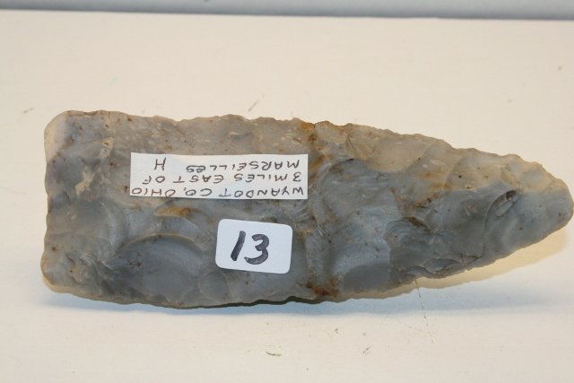 3 7/8" Flint Ridge Adena, Adams Co., Ohio, Ex. Jim Lee, DickeyMar 08, 20263 7/16" Flint Ridge Benton Blade Found in OhioFeb 28, 20262 7/8" x 1 5/8" Dovetail, Partain COA, Flint Ridge, Licking County OhioMar 01, 20264 1/8" Archaic Blade, McCurtain Co., OklahomaMar 01, 20265 5/16" Paleo Knife Found in Fulton Co. Illinois serrated saw tooth on one end Ex: Dean DowningFeb 28, 20263 5/16" Tabular Chert Woodland Knife Found in Pettis Co. Missouri.Feb 28, 20262 13/16" x 1 3/4", Dalton, COA Ken Partain, White Fossilized Chert, Daviess County Kentucky - OhioMar 08, 2026HemphillMar 07, 20263 1/4" Agate Basin, Hardin Co., Tennessee, Light Base Grinding, Nicely Flaked, Ex. Jim Lee, Ex.Mar 08, 20265 1/4" x 1 9/16" Adena Knife, Jackson COA,made of Sonora Flint, Kentucky Type, Ex Jim Lienhart CollMar 01, 2026Basetang Knife speckled Root Beer Flint from Kimble County, Texas ex - Conner CollectionMar 01, 20265" x 1 3/4" Sedalia Knife, Burlington, Illinois, Ex. Bill MangoldMar 08, 20263 1/8" Hanna Northern Knife River Chert Arrowhead Found in South Dakota Ex: Dan Maas Collection.Feb 28, 2026Osceola, Missouri creek findMar 07, 20263 3/8" Hopewell Arrowhead Found in Vernon Co. Wisconsin. Ryan Keele COA.Feb 28, 20264 5/8" x 1 5/8" Cobbs Triangle, Undetermined Chert, Missouri, COA Jerry DickeyMar 01, 2026