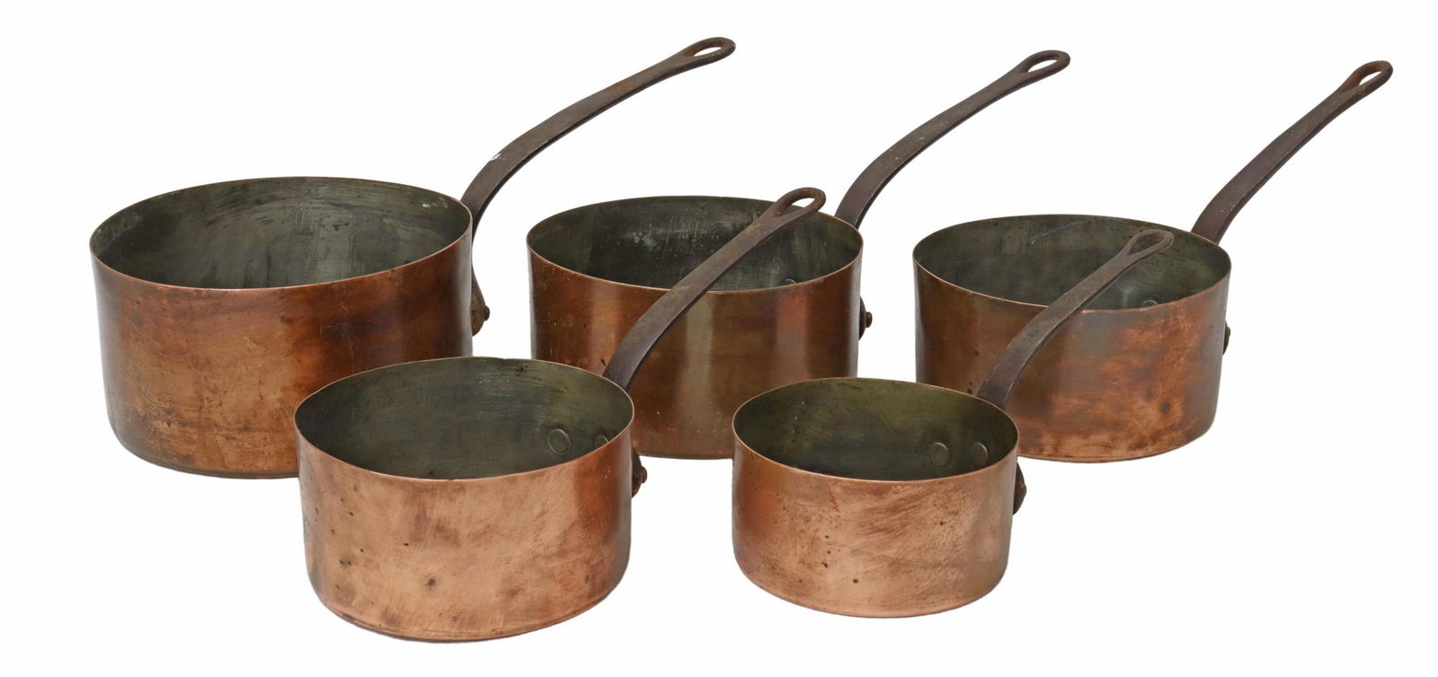 (5) FRENCH COPPER KITCHENWARE GRADUATED PANS