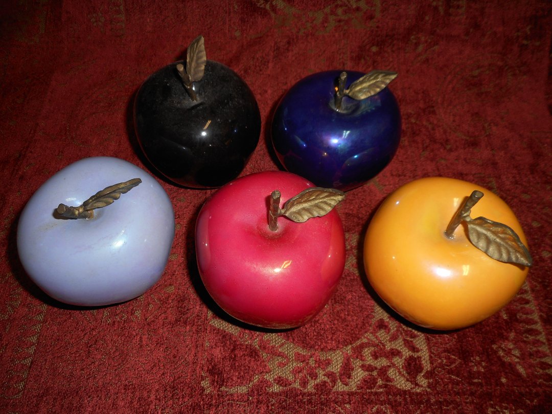 5 Glass Apples with Bronze Stems