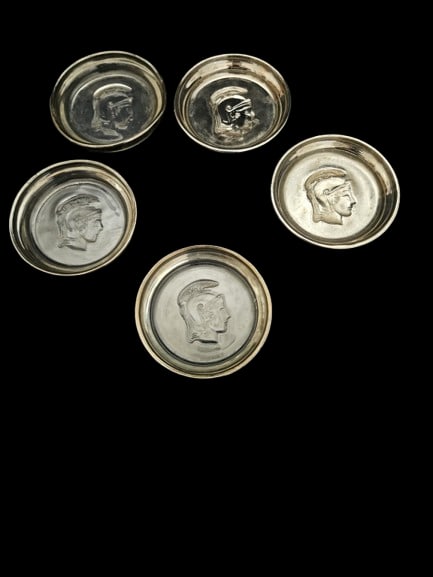 Lot of 5 Thailand CoinsMar 22, 2026Lot of 4 Commemorative Half DollarsMar 28, 2026Lot 5 Carson, Woodbury Pewters+ Deco Plates3 hrs LeftLot of 16 antique brass coasters and plates2 hrs LeftFranklin Half Dollars 90% Silver Lot of 10 Collectable Coins Total Weight Approximately 125 Grams orMar 12, 2026Lot of 6 Assorted Clear Glass ItemsJul 10, 2025Sterling Silver Coaster and Accessory LotMar 15, 2026Lot of 4 Sterling Rim CoastersMar 14, 2026Lot of 21 Antique Chinese Silverplate Coaster3 days LeftLot of 2 Silverplated and Glass CoastersMar 14, 2026ASSORTED STERLING SILVER & GLASS COASTERS ( 6)3 days LeftSet of (5) Assorted Clear PlatesMar 23, 2026Two Sets of Sterling & Glass Coasters6 days LeftPair Vintage MCM Clear Cut Glass Silver Plate Coasters6 hrs LeftLot of 10 Ten Silver Washington Quarters #5Jul 05, 2025Lot of Five 1964 Kennedy Half Dollars Collection of 5 Coins #9Jun 28, 2025