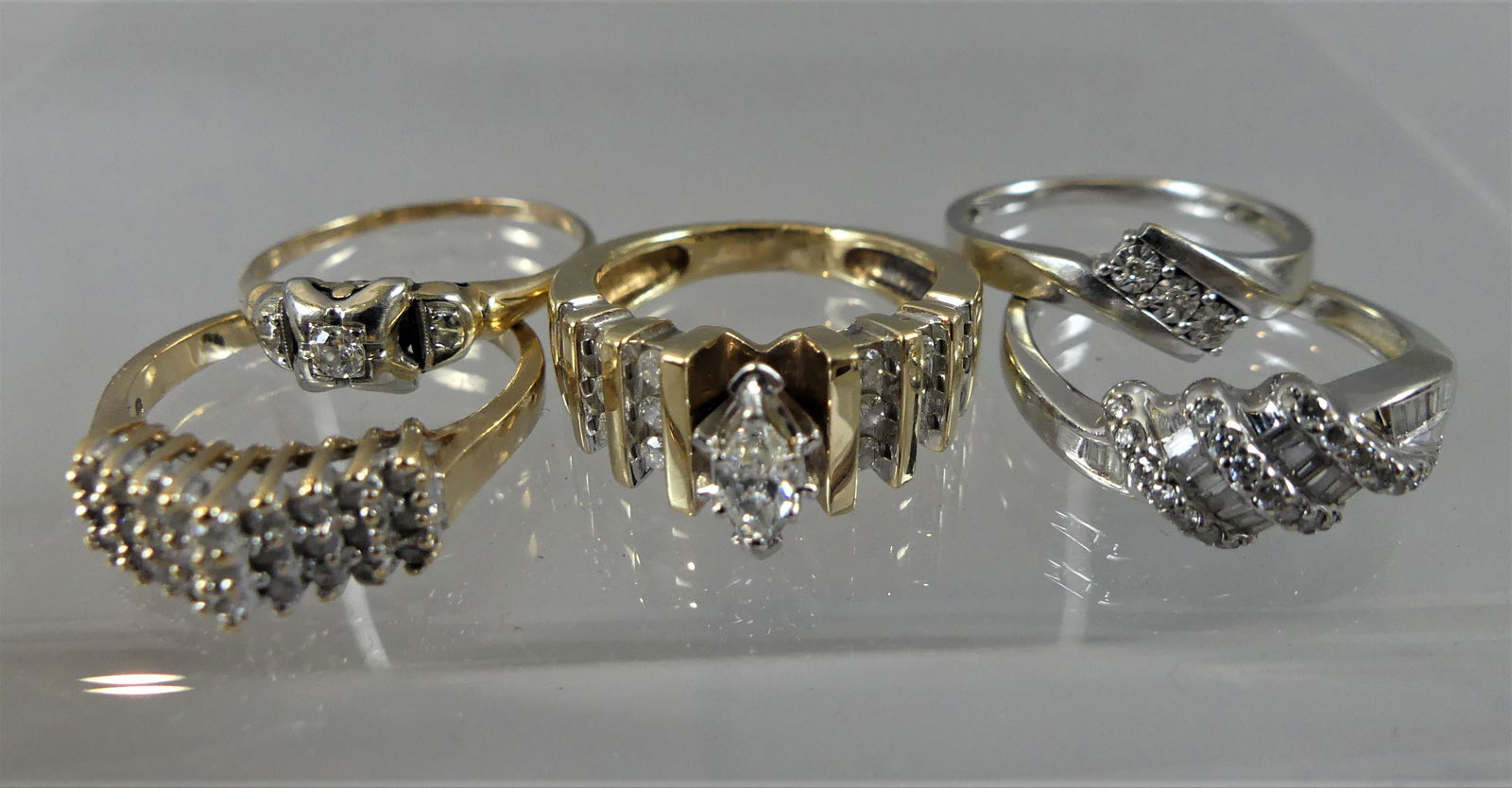 2 gold diamond rings. 1) 18K gold diamond pave ring. Set with 3 rows of graduated square cutTremont Auctions4.6(313)$350(2 bids)Mar 01, 2026