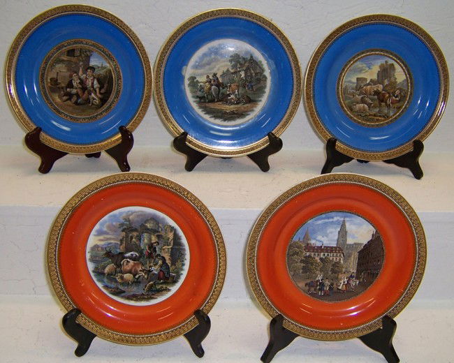 (5) hand painted Pratt plates.