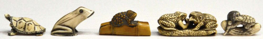 Sold5 Japanese early 20th c. ivory carved netsuke5 fine Japanese early 20th century ivory carved netsuke, 2.1"H(2), 2"H(2), 1.55"H, NO INTERNATIONAL SHIPPING OF IVORYSee Sold Price