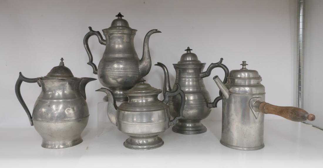 5 Large Antique Pewter Pots