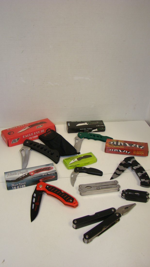 5 NIB FOLDING KNIVES & 3 MULTI-TOOLS