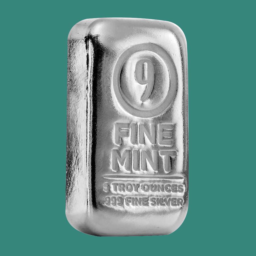 5 oz Cast-Poured Silver Bar - 9Fine Mint