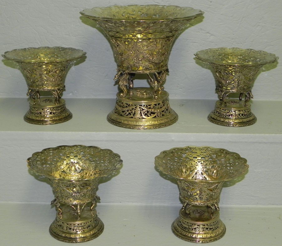 (5) pc 800 silver pierced openwork centerpiece