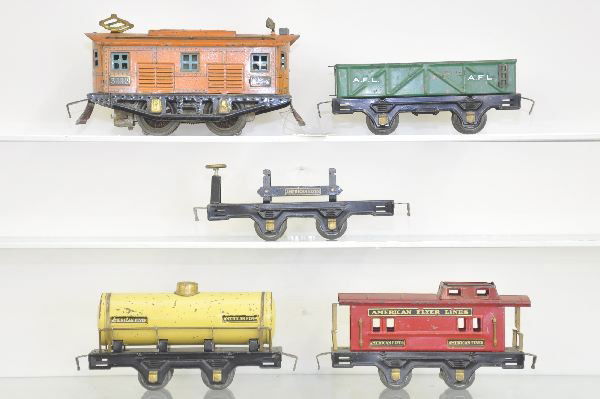 Lot of 6 Tin Litho Train CarsMar 29, 2026Lot of 7 Misc. HO Scale Train CarsApr 02, 2026Union Pacific G-Scale Boxcar & Caboose Lot of 4Mar 28, 2026Assorted Vintage Tinplate Toy Train CarsMar 29, 2026Large Group of American Flyer, Handcars, Freight cars, & Hand Car Shells4 American Flyer Postwar 714 & 2 - 914 Log Dump CarsAmerican Flyer 21088 Franklin Steam Loco & Tender w/ Passenger Cars3 American Flyer Postwar 21165 Steam Loco's and TendersBeautiful American Flyer Prewar 4116 Boxed Freight SetFive railway carriages, track 0, mostly Kraus-FandorApr 04, 20264 American Flyer Postwar Freight Cars - 913, 937, 922, 947 w/ OB's5 American Flyer Postwar GondolasAmerican Flyer Postwar 952 Pikes Peak 953 Niagara Falls 954 Grand Canyon Passenger Cars2 American Flyer Steam Locomotives: 545 & 565 w/ Tenders - O GaugeTOY STEAM LOCOMOTIVE AND PASSENGER CAR AND TWO TOLE-PAINTED SPICE CONTAINERS. Largest, 8.25"h. 24"l.306 Lots Away2 American Flyer Postwar Passenger Cars