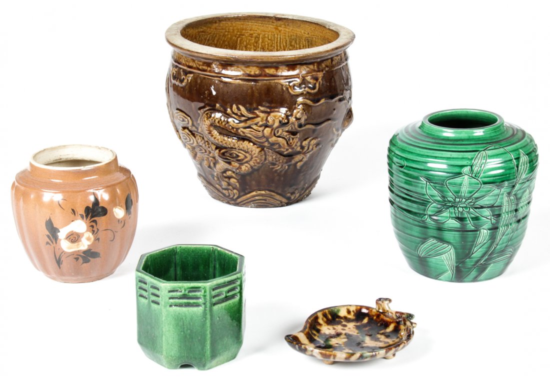 5 Pc Antique Asian Glazed Pottery