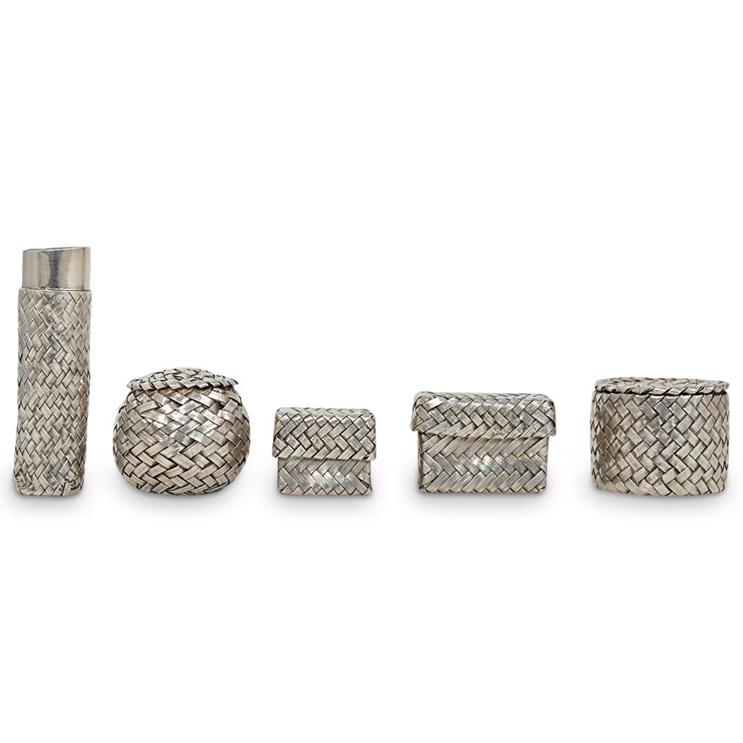 (5 Pc) Mexican Sterling Silver Weaved Baskets