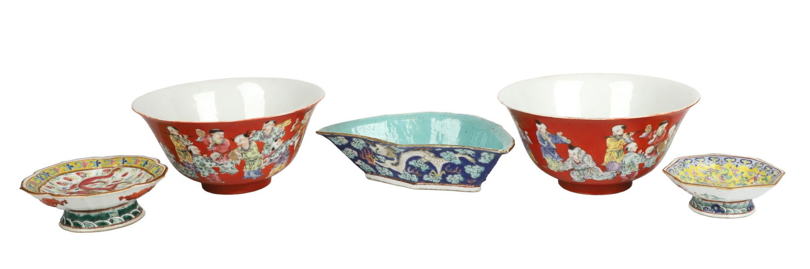 Sold5 pcs Chinese porcelain5 pieces vintage Chinese red glaze porcelain wares. Estate of Anaheim Hills.See Sold Price
