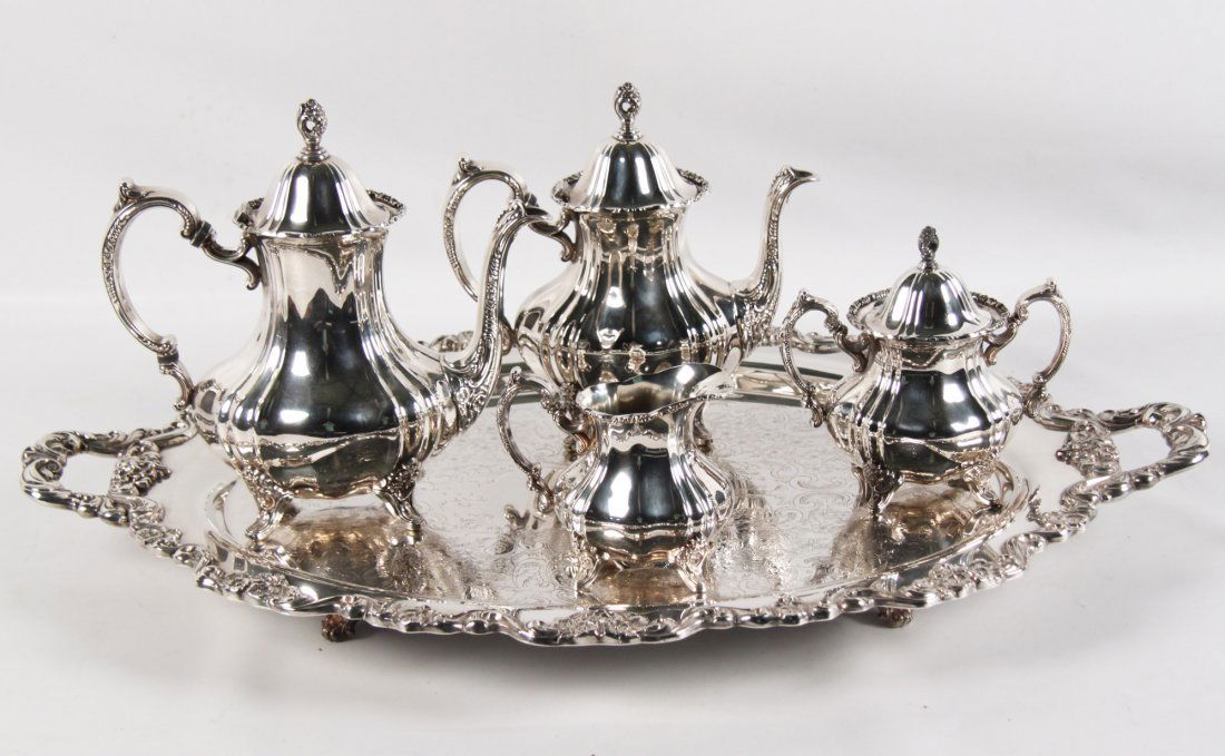 A Sterling Silver Five Piece Tea Set by International2 days LeftFive Piece Silverplated Tea Service, "Lancaster Rose" by Poole3 days LeftRococo Style Silver Plate Coffee And Tea Set (7-piece), C. Mid-late 20th CenturyFeb 26, 20266PC STERLING TEA SERVICE, INTERNATIONAL, 133 TOWMar 07, 2026American Aesthetic Silver-Plate Four Piece Coffee Service, late 19th c., Coffee- H.- 12 1/4 in., W.-Feb 27, 2026Five Piece Silverplated Tea Service3 days LeftLouvre Silver Shop Blossom Mexican Sterling Silver 6pc Tea SetFeb 27, 2026AN AMERICAN SILVER SEVEN-PIECE TEA AND COFFEE SERVICE AND TRAY MARK OF TIFFANY & CO., NEW YORK,6 days LeftWallace “Baroque" Silver-Plated Tea Set With Tray, 5 Pieces2 days LeftLebolt Sterling Silver 6pc Hand Hammered Tea Set with SSD Monogram2 days LeftITALIAN MILAN ARGENTERIA DABBENE .800 SILVER 5-PIECE CHASED TEA SERVICE2 days LeftWallace Grande Baroque Silverplate Tea Set 4pc with Tray2 days LeftSilver Plate Tea Set With Orientalist Motifs And Associated Tray (5-piece)Feb 26, 2026Reed and Barton "Regent" Tea & Coffee Service Set (6)Mar 07, 2026ANTIQUE AND VINTAGE SILVER PLATED TABLEWARESFeb 22, 2026Derby Silver Co. Silver Plate Tea Service, 4 Pcs.Mar 12, 2026