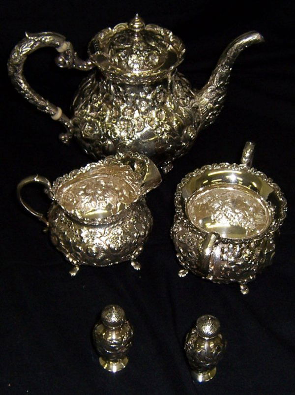 (5) Piece Kirk Repousse' sterling tea service