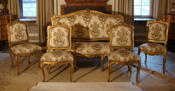 Sold5 piece French parlor set, needs frame repair, several5 piece French parlor set, needs frame repair, several old repairs.See Sold Price