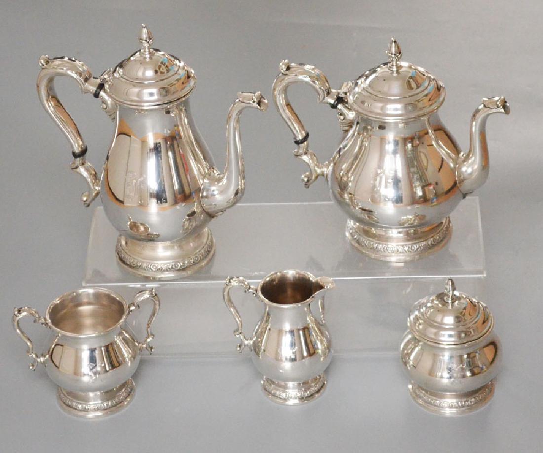 SoldContinental 5 Piece Sterling Silver Tea and Coffee SetProperty of a Diplomatic World-Traveling Family Description: Continental 5 Piece Sterling Silver Tea and Coffee Set, comprising a teapot, coffee pot, tall cream lidded sugar and small cream pitcheSee Sold Price