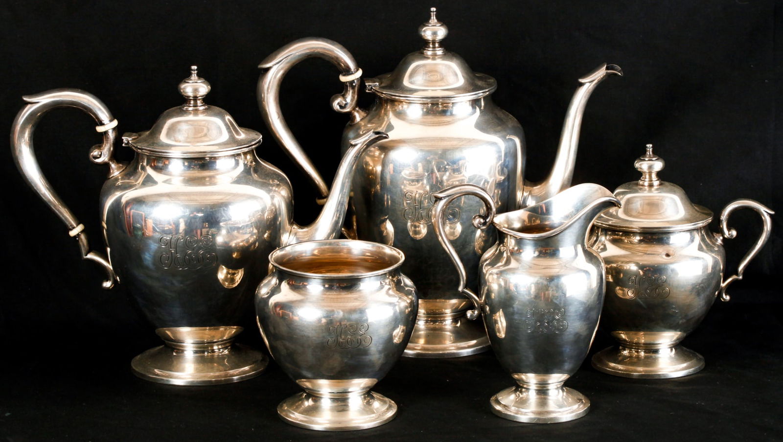 7 pc Lot Sterling Silver 7.177 OZT4 days LeftENGLISH SILVER LUSTRE CERAMIC TEA AND COFFEE ARTICLES, LOT OF SIXMar 04, 2026William Hunter 1842 Sterling Teapot Set of Three3 days LeftA FOUR-PIECE SILVER 'BAMBOO' TEA AND COFFEE SERVICE, MARK OF ZEE WO, SHANGHAI, CIRCA 1870-1925Mar 11, 2026Sterling Coffee and Tea Set by Reed & BartonMar 10, 2026Vintage WM A Rogers Silverplated Tea Pot & Creamer4 hrs LeftGorham Sterling 5 Pc. Coffee and Tea SetMar 10, 2026(4) PIECE ASSEMBLED STERLING TEA SERVICEMar 05, 20266 Piece Sterling Silver Tea and Coffee Set1 day LeftE.G. WEBSTER & SON SILVER-PLATED FIVE-PIECE COFFEE AND TEA SERVICEMar 04, 2026F.B. Rogers Five-Piece Sterling Silver .925 Tea SetENGLISH SILVER LUSTRE CERAMIC TEA AND COFFEE 21-PIECE PARTIAL SETMar 04, 2026Wilhelm BINDER. 6-piece tea and coffee set in Queen Anne style. 925, 835 and 800 silver.3 days LeftSILVER. (4) Pc. Italian .800 Silver Tea Service.Mar 08, 2026SILVERPLATE TEA AND COFFEE SERVICE5 days LeftWatson sterling silver 3-piece tea set. Classical urn form with square bases. Monogrammed. Teapot4 days Left