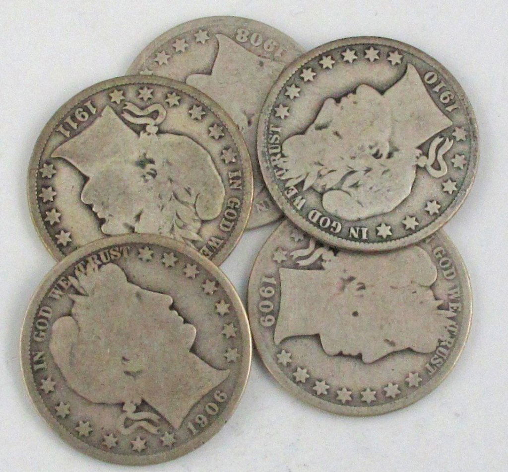 5 Pieces Barber U.S. $.50 Half Dollars