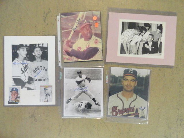 5 SIGNED BASEBALL PHOTOS: AARON, BOB BUHL, PHI