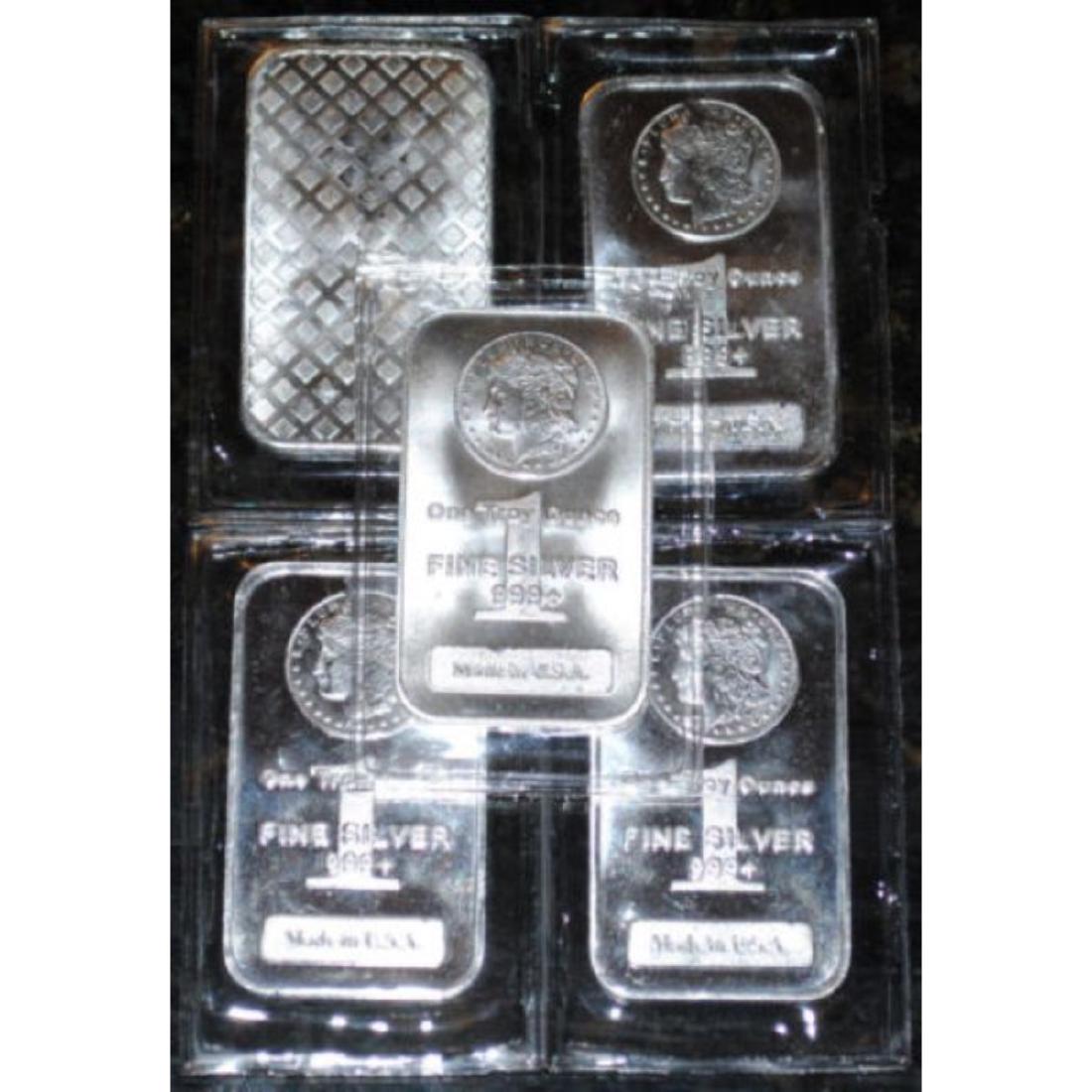 (5) Silver Bars 1 oz. Each - Morgan Design - Pure-