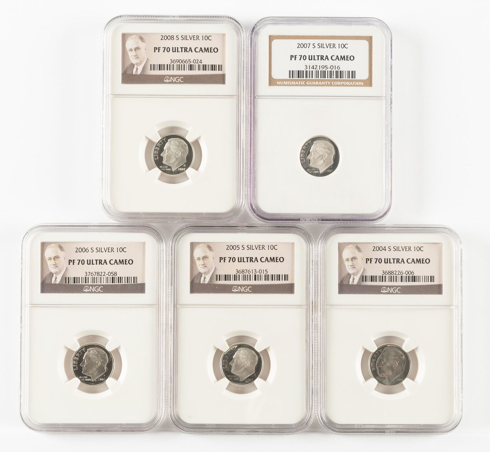 5 Silver Roosevelt Dimes NGC PF70 UC
