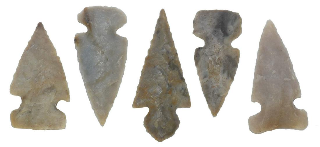 5 Spiro Mound Birdpoints. 3/4"-15/16". Ex-Cooperider