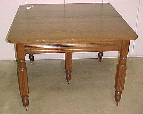 SoldAntique Large Drop Leaf Wood Dining TableLarge Drop Leaf Wood Table; having tapered square legs, two swing out to support table leaves. Measures 29 x 53 (fully opened) x 44.5 inches.See Sold Price