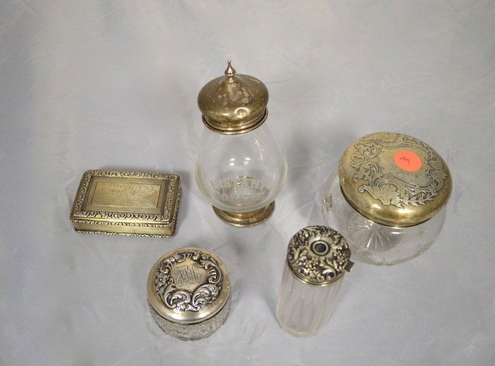 5 STERLING SILVER AND GLASS DINING ITEMS