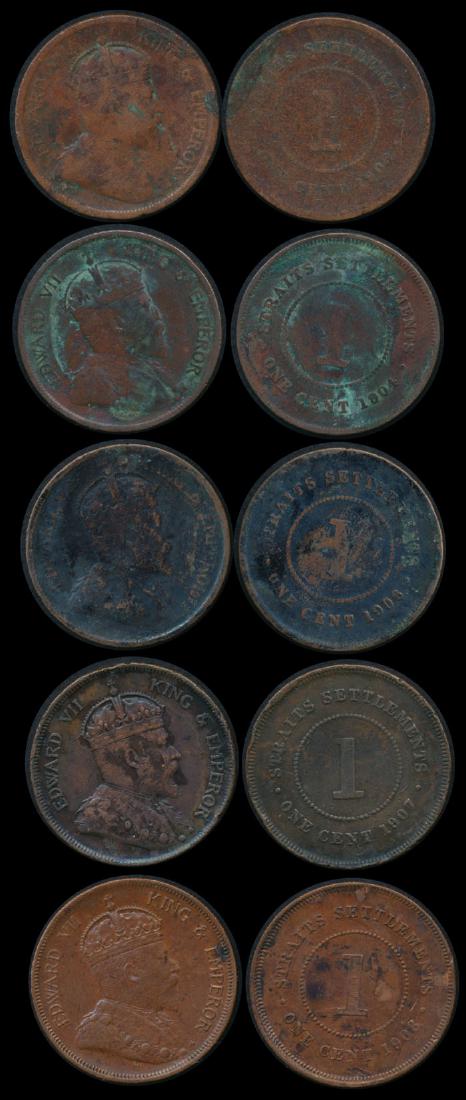 5 Straits Settlements KEVII 1c 1903-08