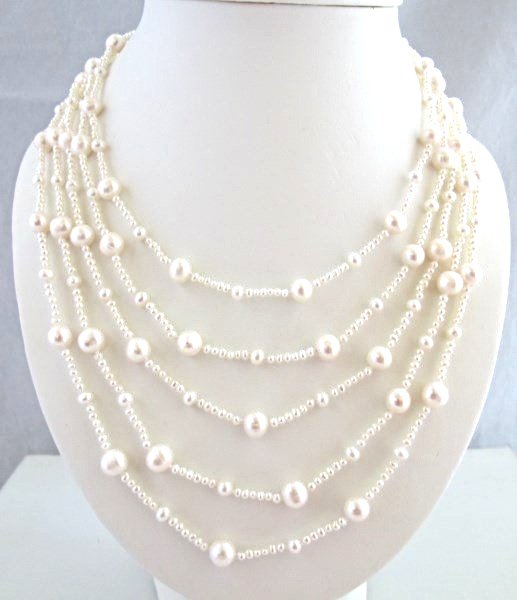 5 Strand White Pearl Necklace