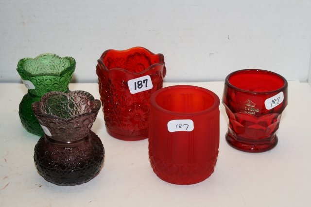 Vintage (ca. 1980s) 4-Piece Set of Hand-Blown Ruby Red Glass Candle Holders & VasesWorld Historics & Relics, LLC$305 days Left