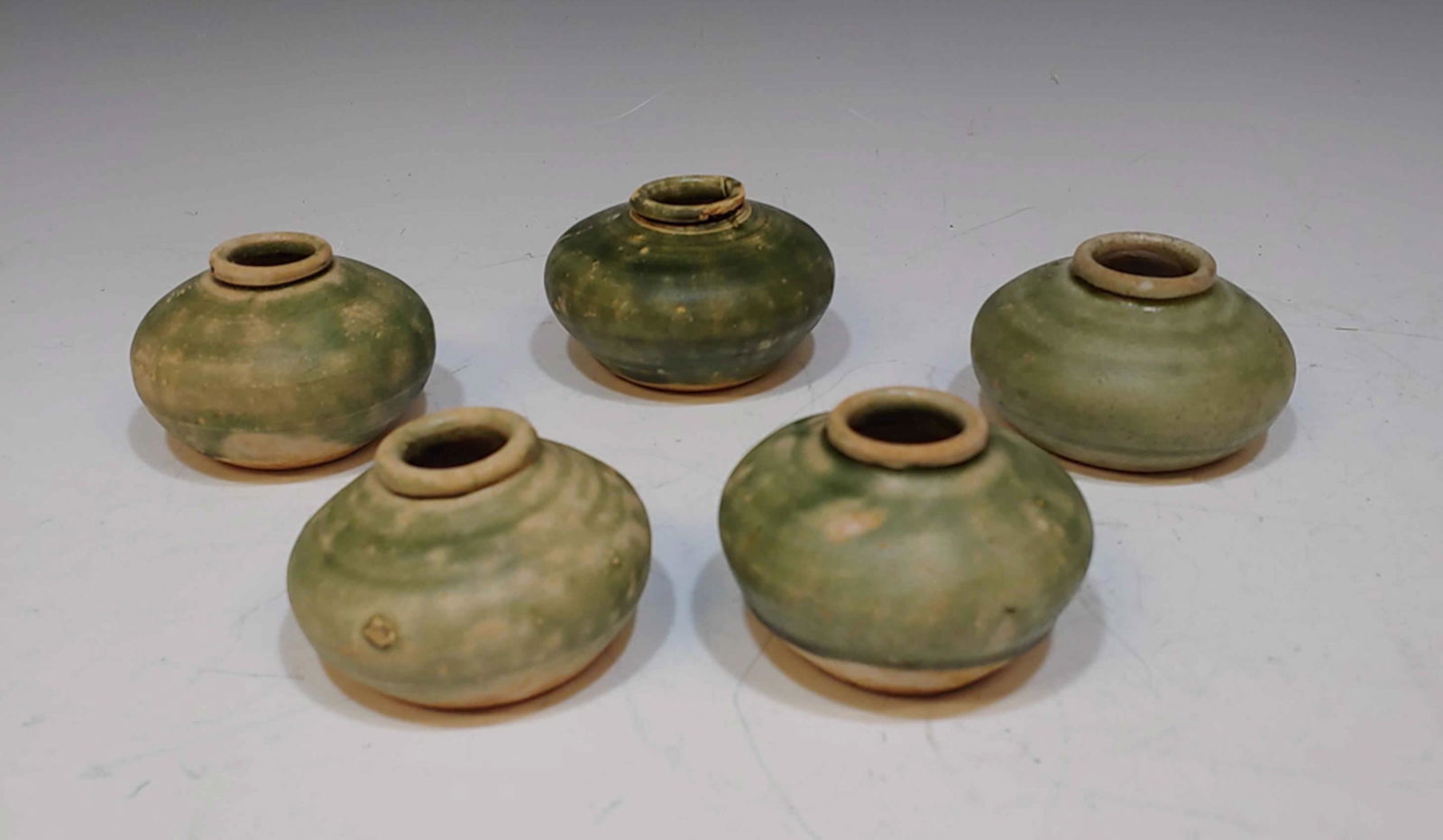 5 Vietnamese Ca Mau Green Ceramic Jarlets
