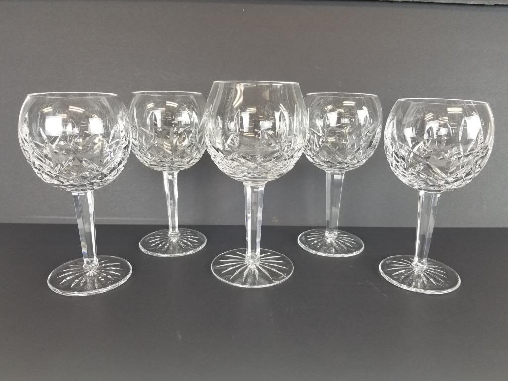 Sold9 Waterford Crystal Goblets Lismore Pattern Glass9 Waterford Crystal Goblets Lismore Pattern Glass. The Waterford crystal glass measures 5 7/8". In excellent condition.See Sold Price