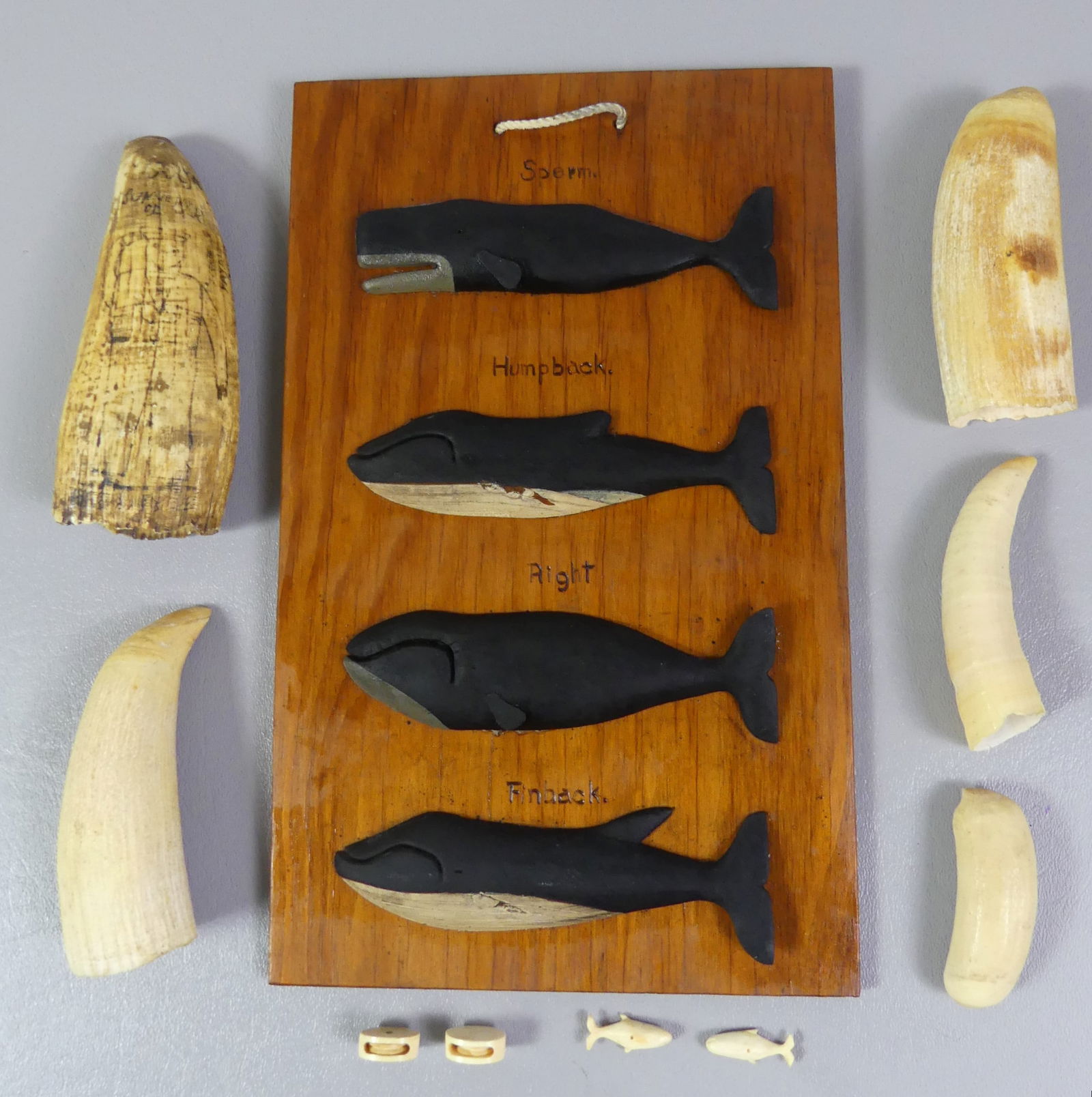 5 WHALE TEETH & WHALE PLAQUE ETC.
