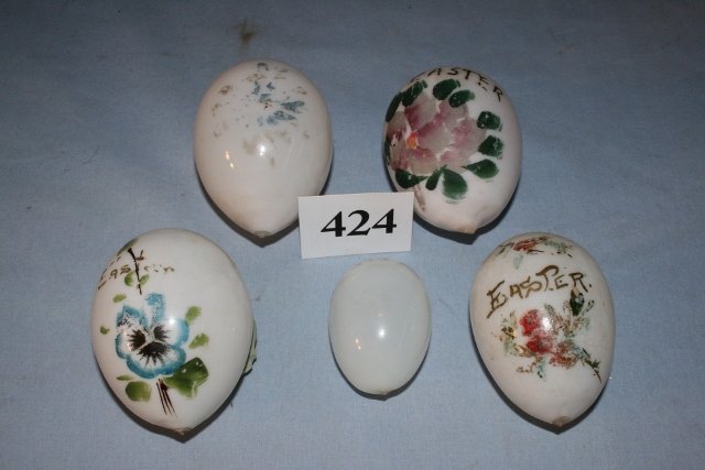 5 White Glass Easter Eggs