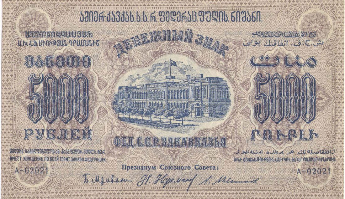 5000 RUBLES 1923 FED.SSR