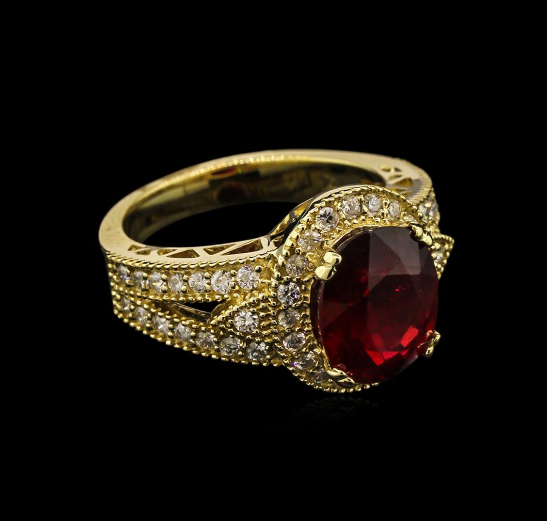 5.03ct Ruby and Diamond Ring - 14KT Yellow Gold