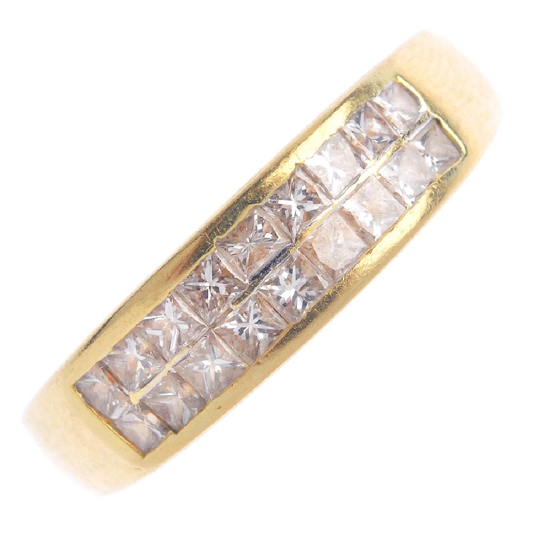 (51212) An 18ct gold diamond panel ring. Designed as a