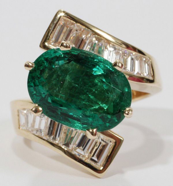 5.26 CT. NATURAL EMERALD & 2CT. DIAMOND RING