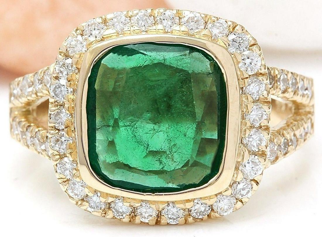 5.28 Ctw Natural Emerald 14k Solid Yellow Gold Diamond