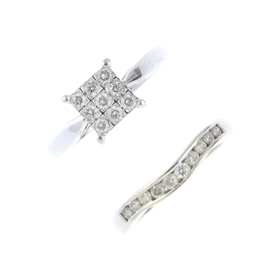 (52857) Two gold diamond rings. The first designed as