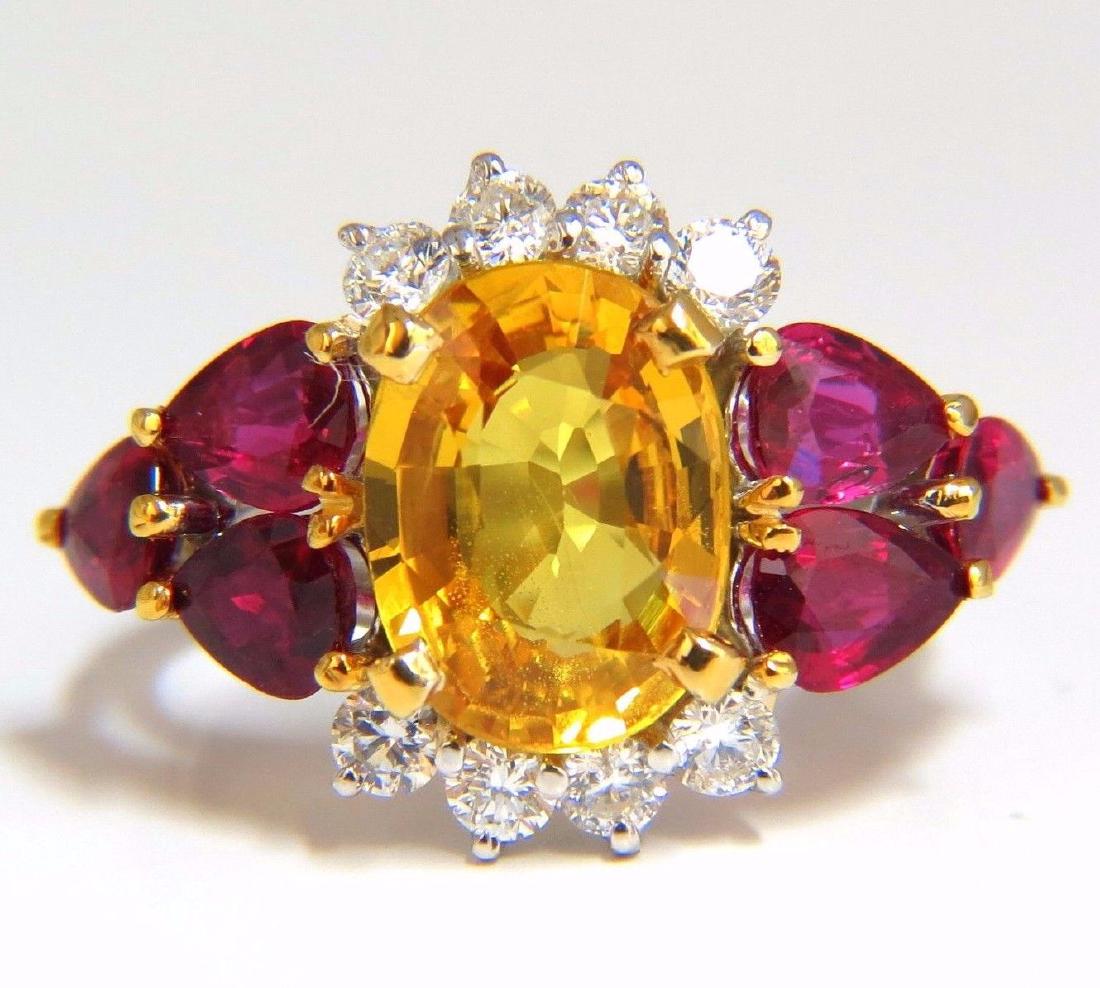 5.30ct NATURAL VIVID YELLOW SAPPHIRE RUBY DIAMOND RING