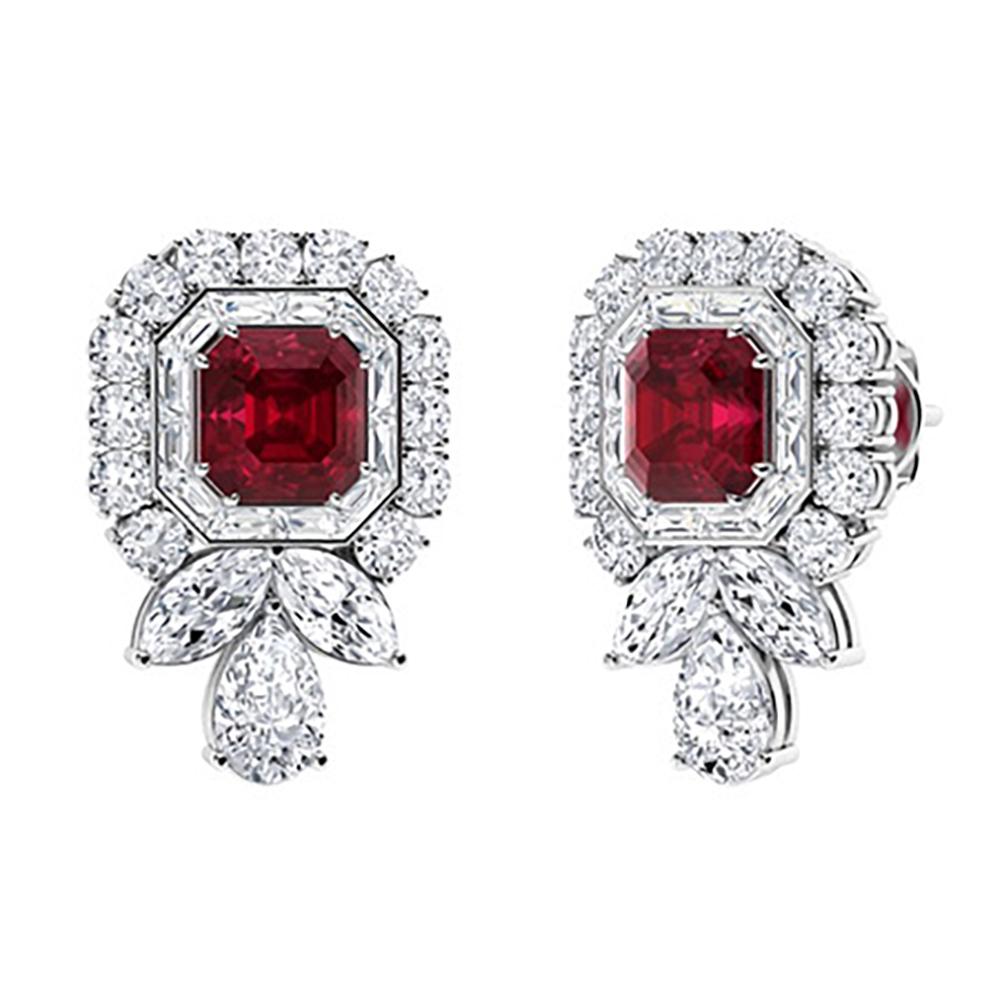 Stunning 18K White Gold Diamond Ruby Earrings 4.00 Ct F-G VVS-VS 1.5 InchesBidhaus4.2(854)$1006 days Left