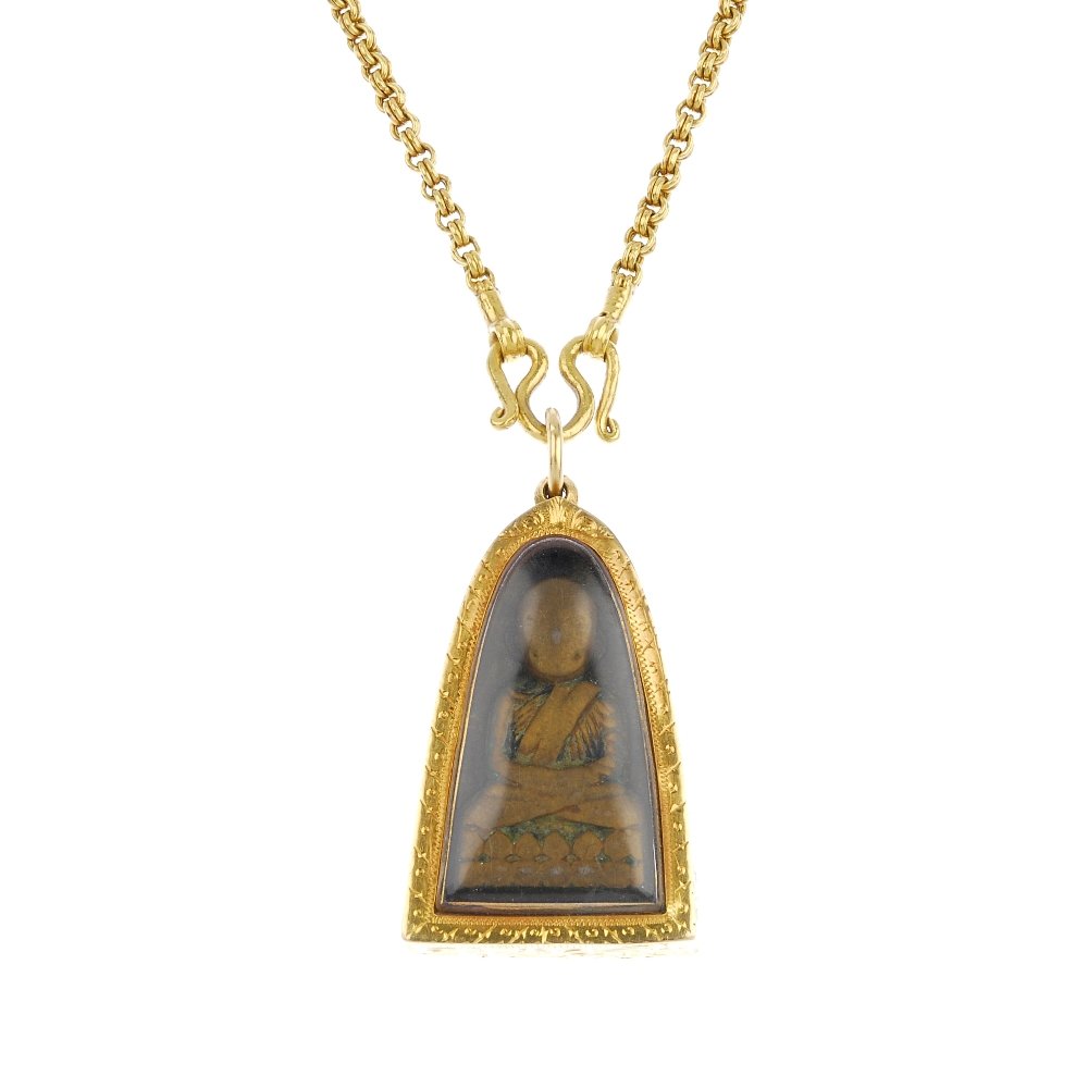 Vintage dyed and carved plastic oriental man pendat with goldtone metal chain strap necklaceSuccetti Gallery4.7(160)$15Mar 01, 2026