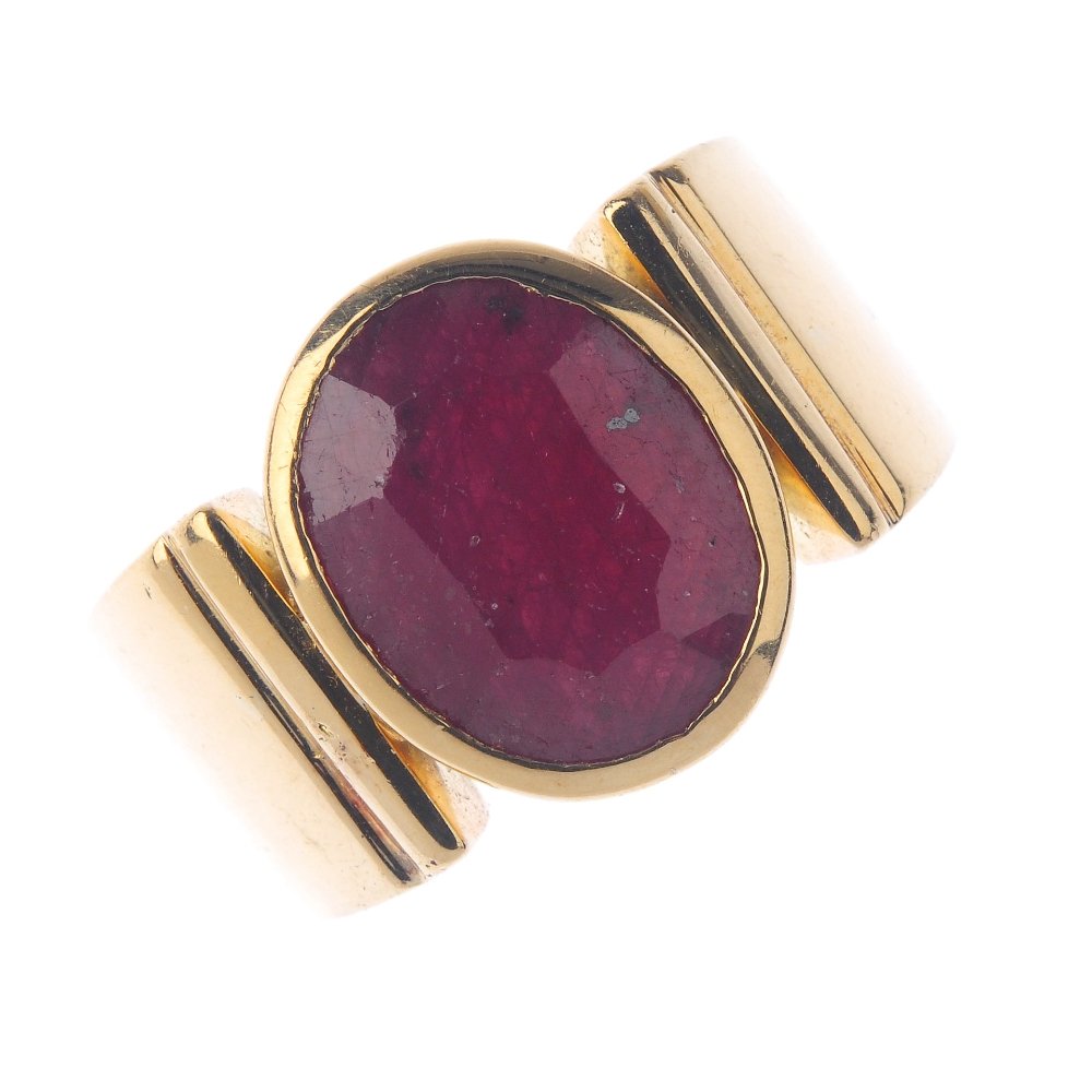 (546960 1 A) A Glass Filled Ruby Single Stone Ring.